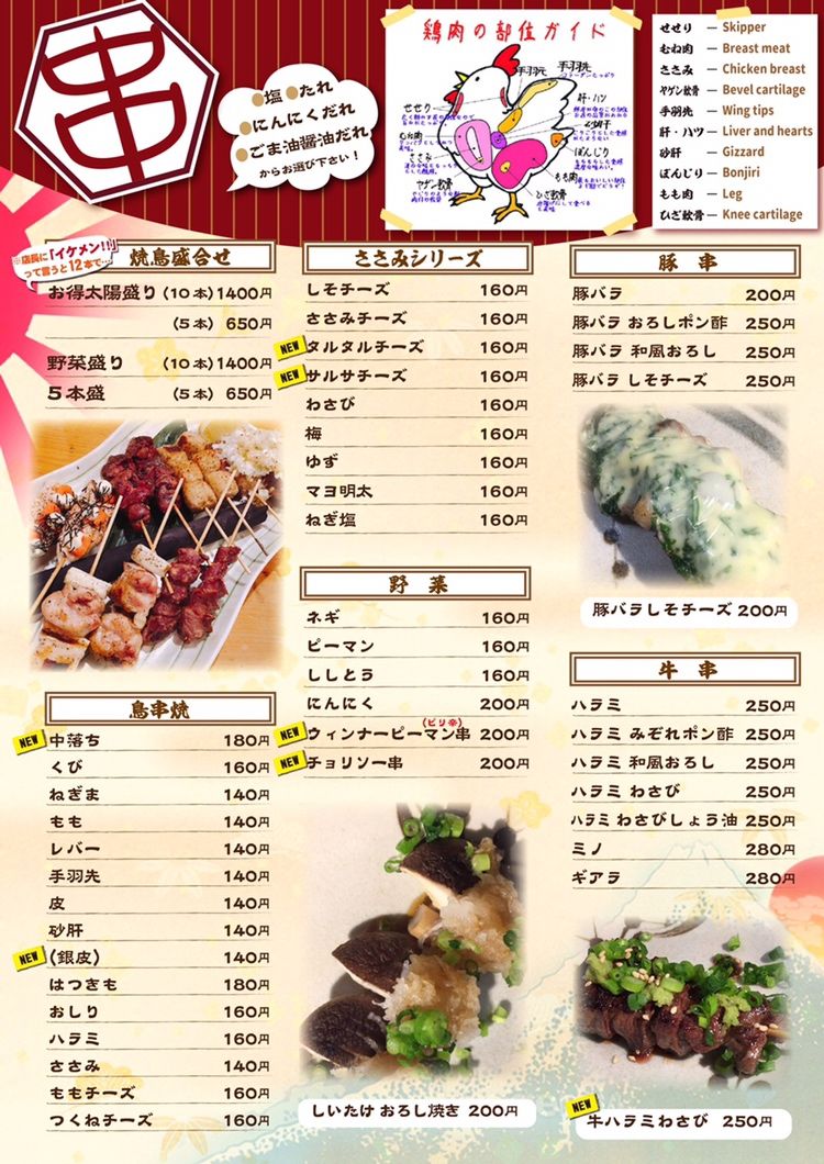 ヘルシーなお好きな方はささみもございますので、ささみチーズやささみマヨ明太子、ささみゆず胡椒、ささみわさび、ささみうめのりと、あっさり美味しく食べられる串メニューをお楽しみいただければ幸いです。