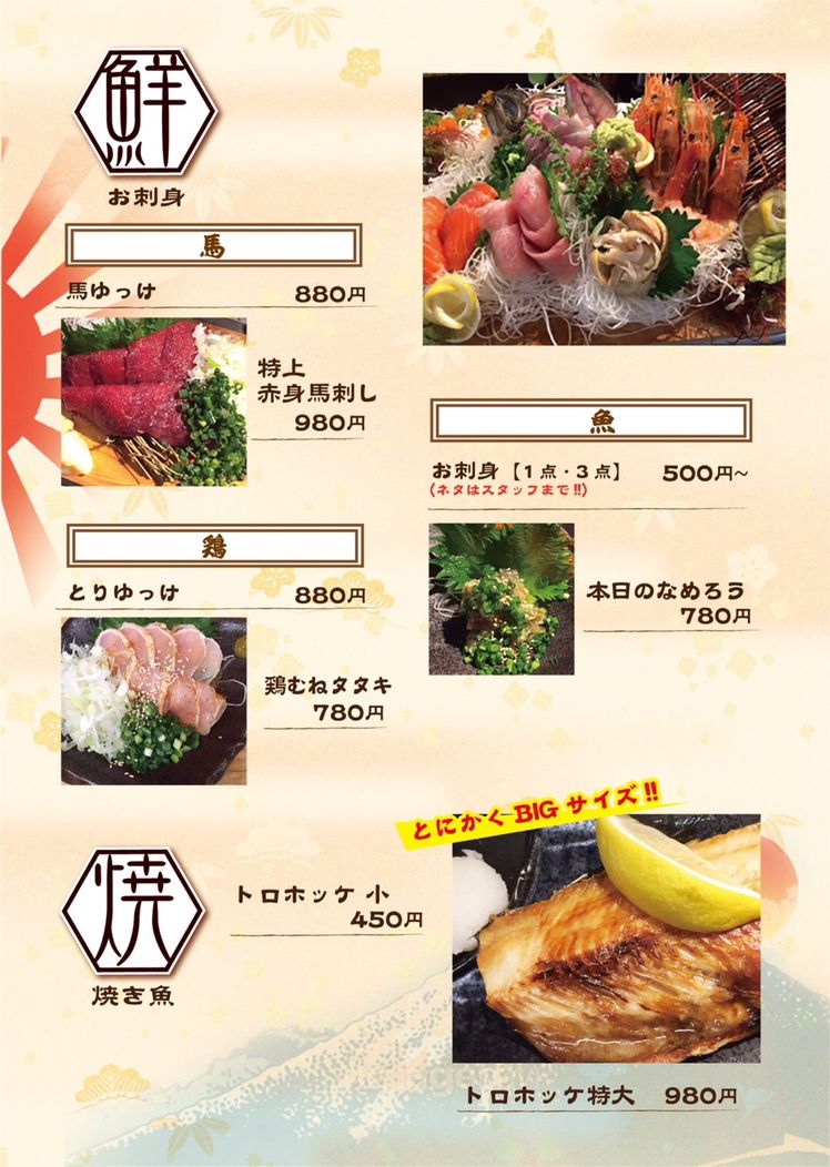 当店は串焼きや焼き鳥をメインにメニューをご用意しておりますが、焼き物だけではく新鮮なお魚を使用した刺身や、とろホッケやだし巻き玉子をはじめその他にもお楽しみいただけますのでご利用ください。